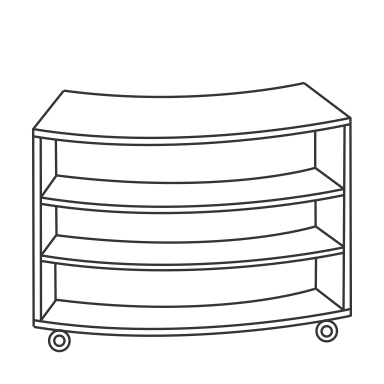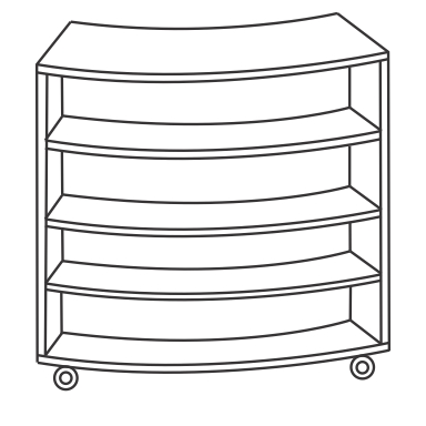 Curved library shelving has been increasingly popular over the past few years. Creating a focal point in an otherwise very geometric environment. These modular units are often coupled with straight shelving units to carry and compliment the curved layout throughout the space. Available in 2, 3 and 4 shelf heights with or without lockable castors.